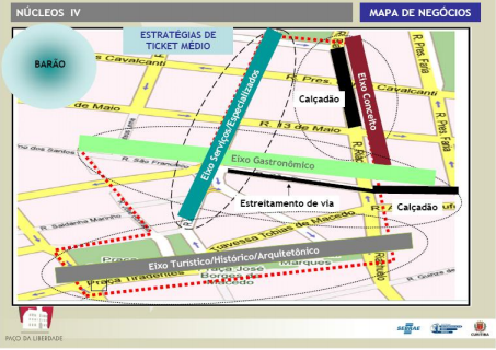 Mapa da revitalização separado pelos eixos. (Crédito: Sebrae/PR 2009)